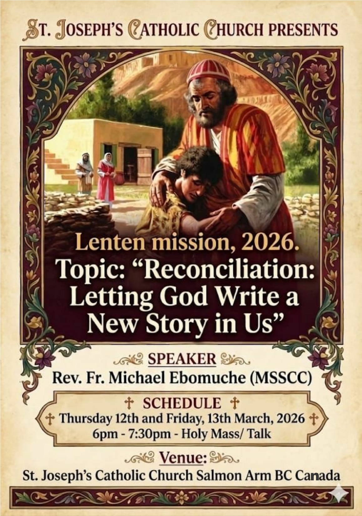 with the Pastor sastjoseph@rcdk.org 250-832-3021